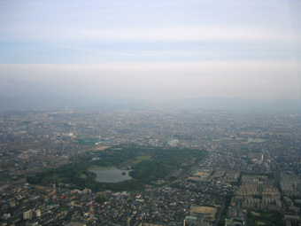 大泉緑地を見ながら八尾空港の場周経路に