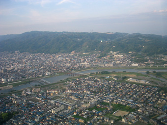 右側の生駒山に沿って飛びましょう。