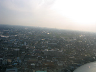 さっき離陸してきた滑走路が斜め右後ろに
