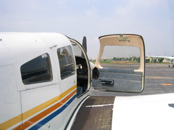 荷物も全て収容しました。翼の上から搭乗です。 |