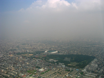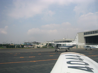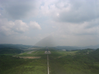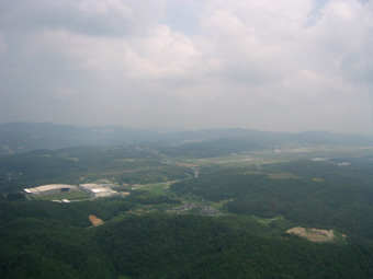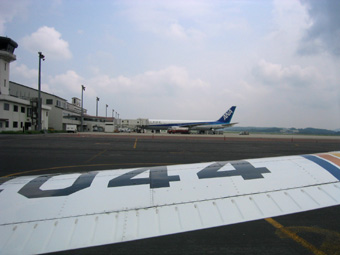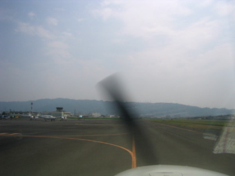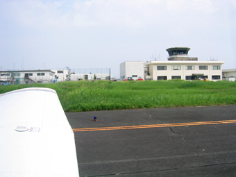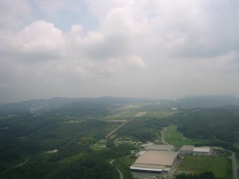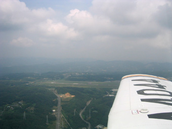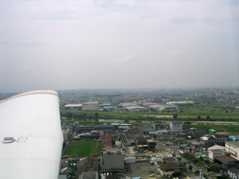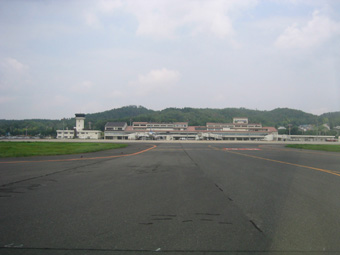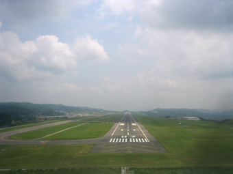 滑走路の手前で左旋回をして、西からの着陸です。 |