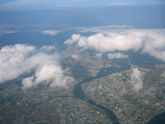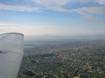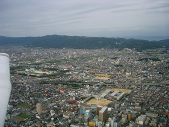 西名阪と平行に飛んで藤井寺球場の真上あたり