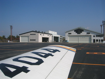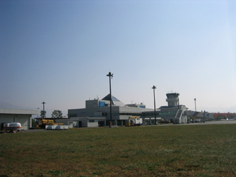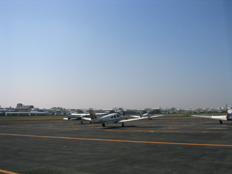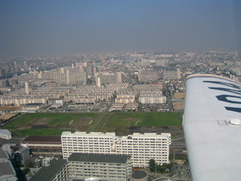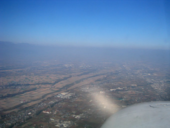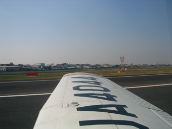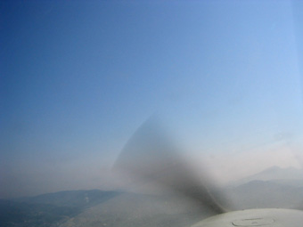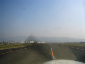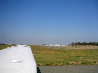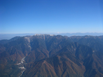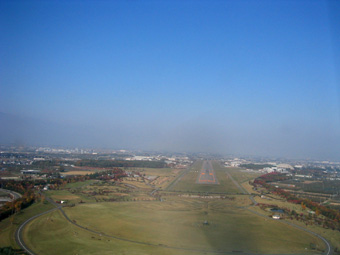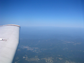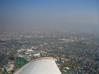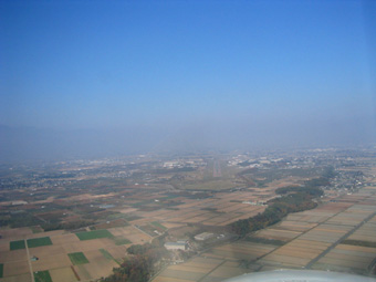 これから飛んでいく東の空も雲がなく真っ青ですね。 |