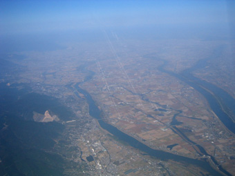 山と盆地の境目は少し気流が乱れて揺れましたが、