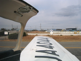 パーキングブレーキを外してゆっくりとタキシングです。