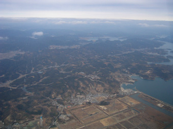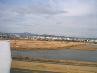 神戸空港へ降りる旅客機からは