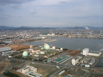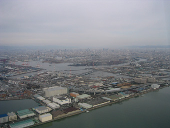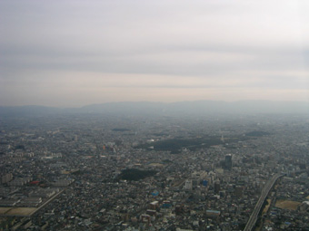 堺市です。大きな緑の場所は仁徳天皇稜です。 |