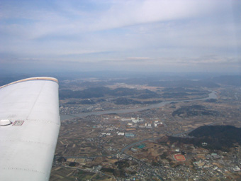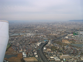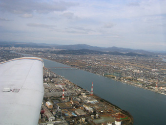 まずは前方に見えている大和川に沿って飛びましょう。