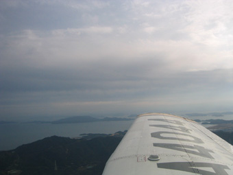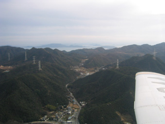 この高度だと、まだ右手の山と近しい高度です。