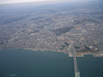 明石大橋の真上を通過中です。 |