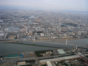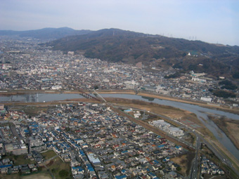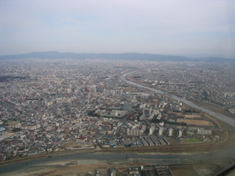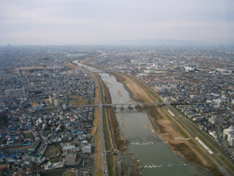 ちょうど右側の川が大和川です。 |