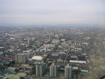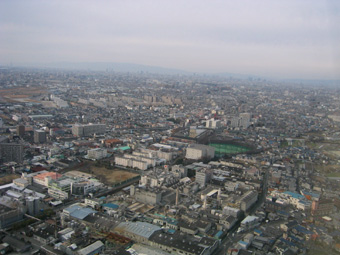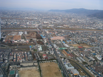 遠くに生駒山が見えています。