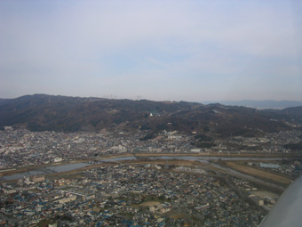 山のふもとに八尾空港がありますが、