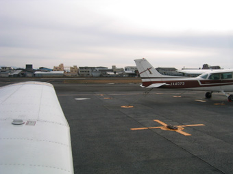 このタキシーウェイは駐機場に一番近いんです。