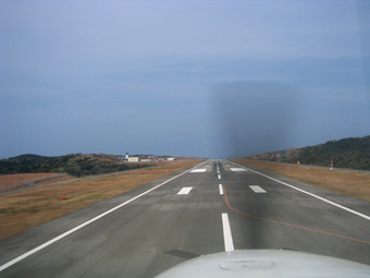 絶壁の上に滑走路があるので高度を間違いないように。 |