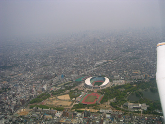 長居球場ははっきり見えますが、その先に