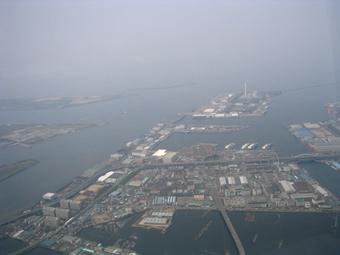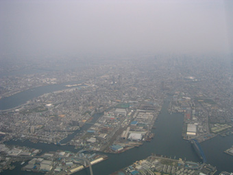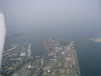 南港上空を北西に向かって、許可された巡航の