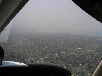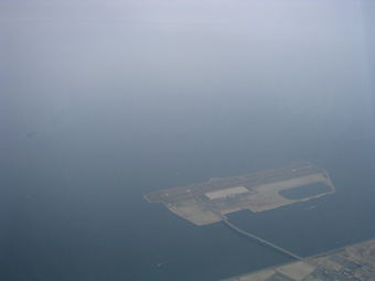 視程が低いので関西空港に着陸進入中の