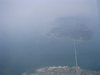 飛行機が神戸空港のすぐ南を旋回していくのが