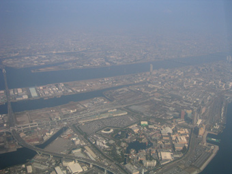 南港です。阪神高速の湾岸線が分かります。
