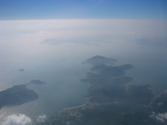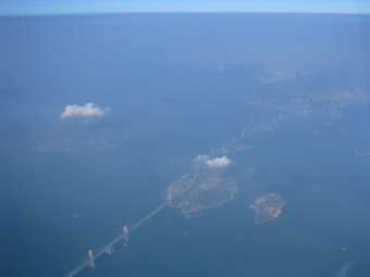 下をよ〜く見ると松山空港へ着陸進入中の