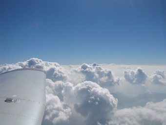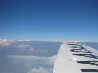 このまま青空の中を飛び続けたいところですが、