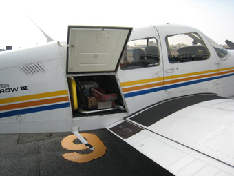 荷物を機体後部の荷物入れに収納しましょう。