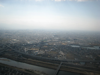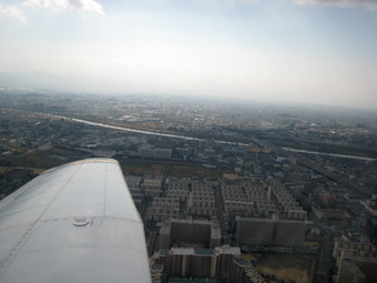 いつもなら機体の右手に見える八尾南の