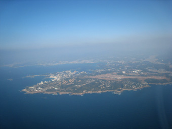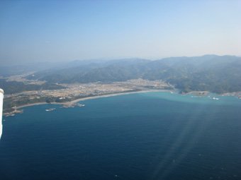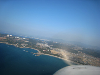 あの海岸線が目安ですね。