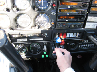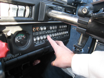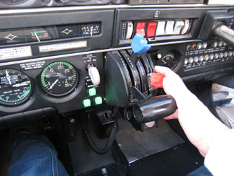 赤いレバーを手前に引けばエンジンが停止します。 |