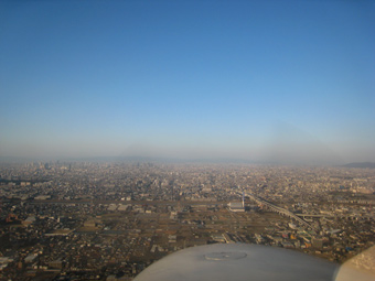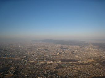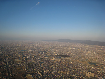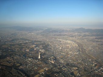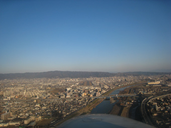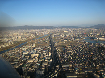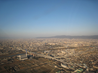 この高度からだと生駒の山が低く見えちゃいますよね。 |