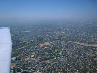 大阪湾が見えてきましたが、もう少し西へ飛んだ