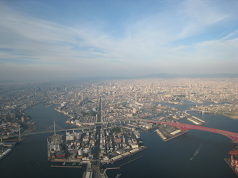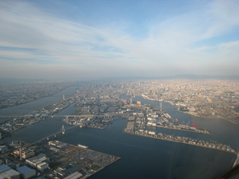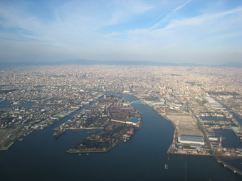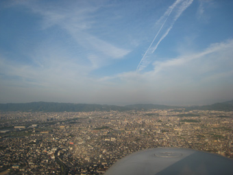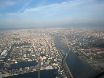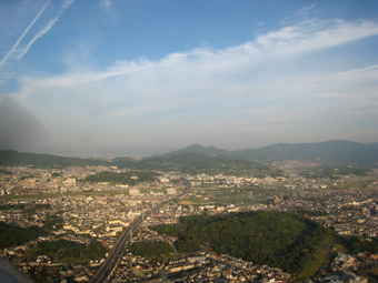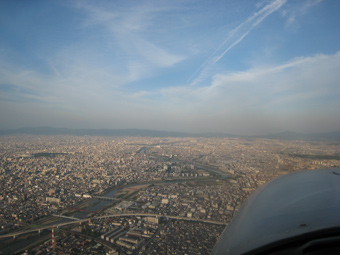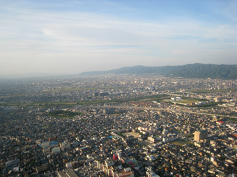 遠くを見ると生駒の山が綺麗に見えてますね。