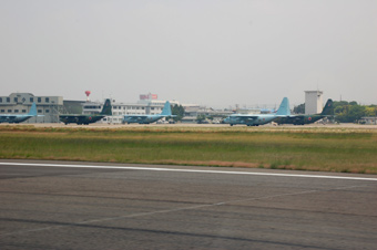 旅客ターミナルの反対側は自衛隊の輸送機が