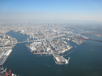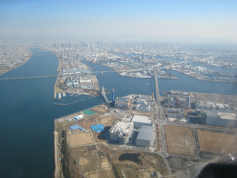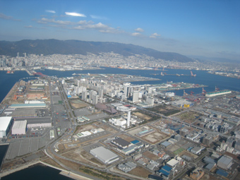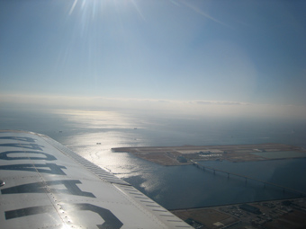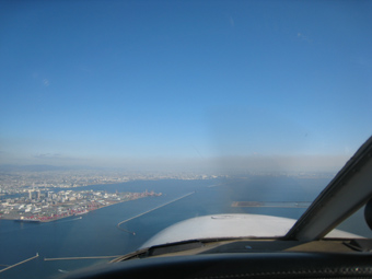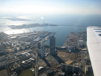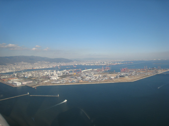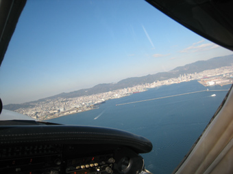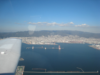 丁度ポートアイランドの南側を飛ぶ感じですかね。 |