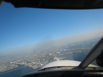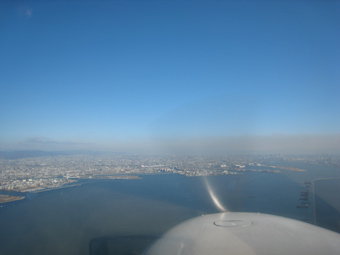 離陸してきた滑走路と平行に東へ飛びます。 |