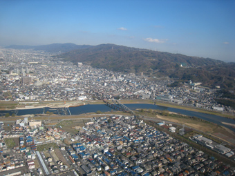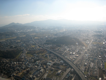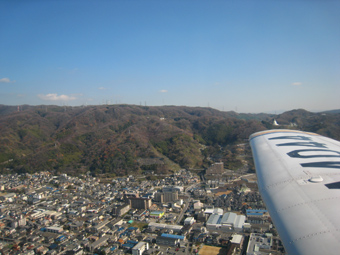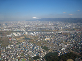 生駒山と平行に飛びながら高度を下げ続けます。 |