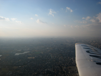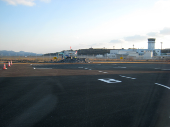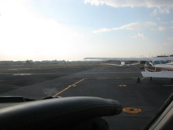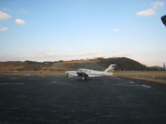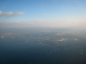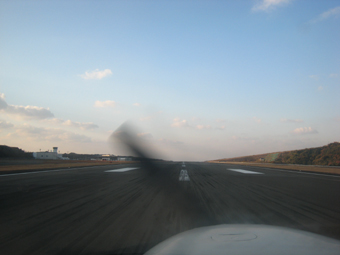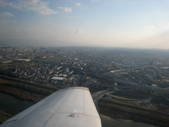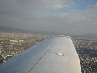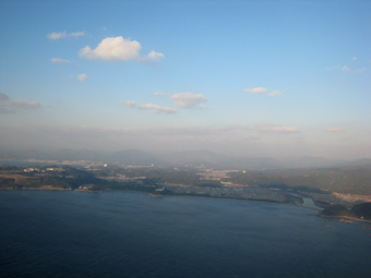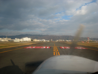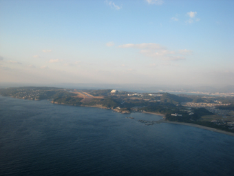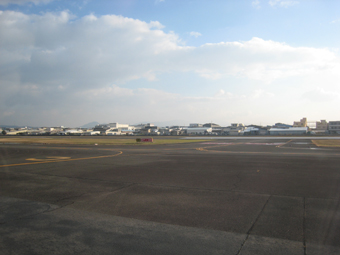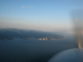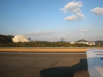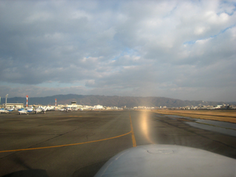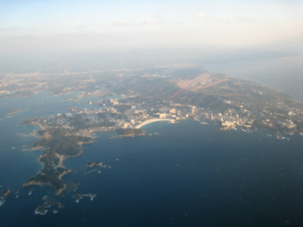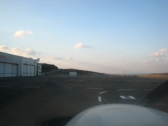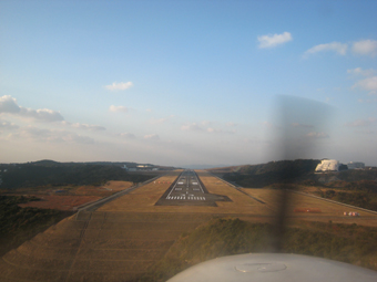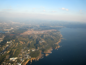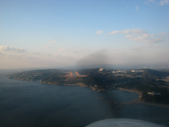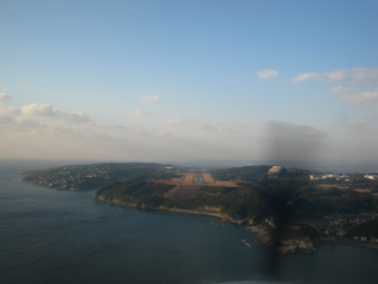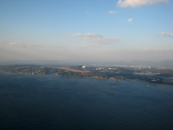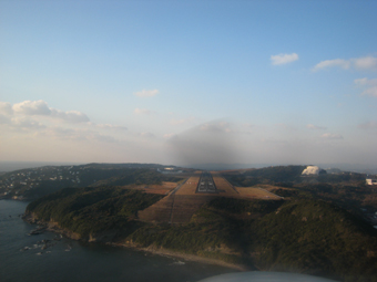 一旦海側に出て左旋回、滑走路を左に見ながら