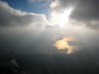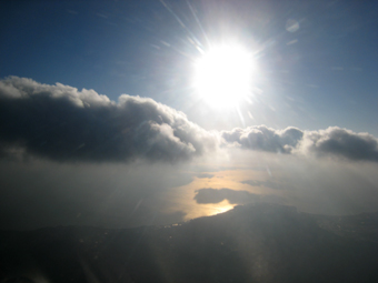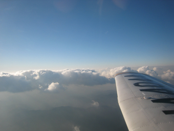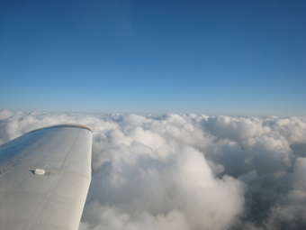 ちょうど雲の層の少し上ぐらいの高度ですね。