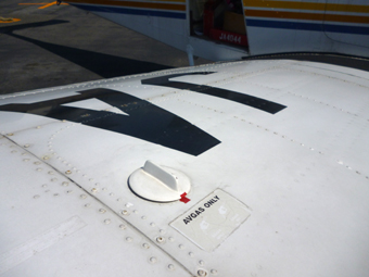 翼の上の燃料タンクのフタもちゃんと閉まっているか
