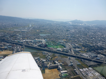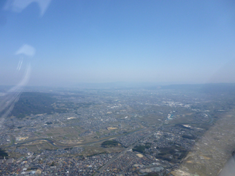 奈良盆地へ。このあたりは伊丹への旅客機が