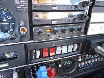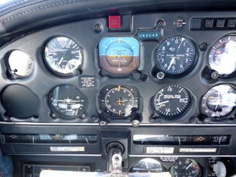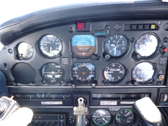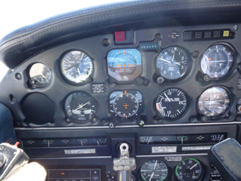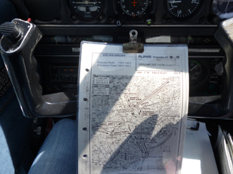 操縦席に座って、GPSやチャート類を