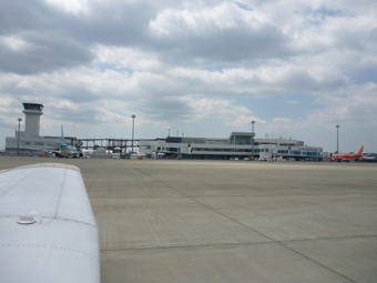 新しい空港ですね。駐機場がまっさらって感じで。 |