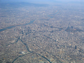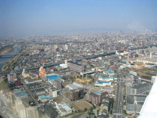 大阪市が良く見えます。中央のちょっと左のビル郡が
