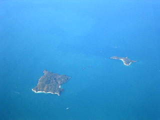 そろそろ降下を開始。途中に浮かぶ瀬戸内海の島です。