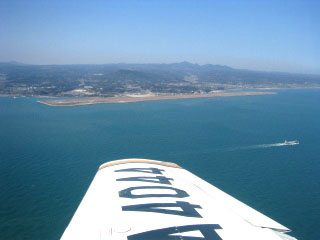 大分空港のRwy01へのショートファイナルです。滑走路が長い空港なので、あえて高めにアプローチをしています。 |