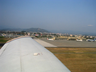 53分の短いフライトでした。やはり西の風が強いために、高知から八尾への記録的なフライトタイムでした。お陰で燃料代も節約できて万歳!次のフライトを楽しみに八尾空港を後にしました。 |