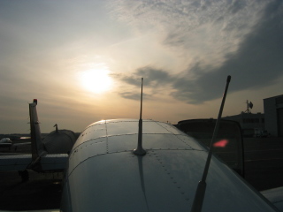 向かいます。夕方の日をうける八尾の管制塔。 |