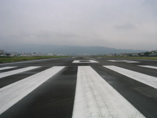 右を見れば横風滑走路の進入側のスレッシュホールド(末端)が見えますね。確かにRwy31の表示が印字されています。 |