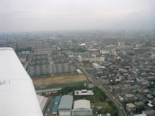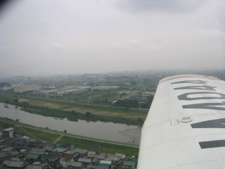 旋回も終わって北に機首を向けました。ライト・ベースです。先ほど目印にしていた近畿道を横断します。